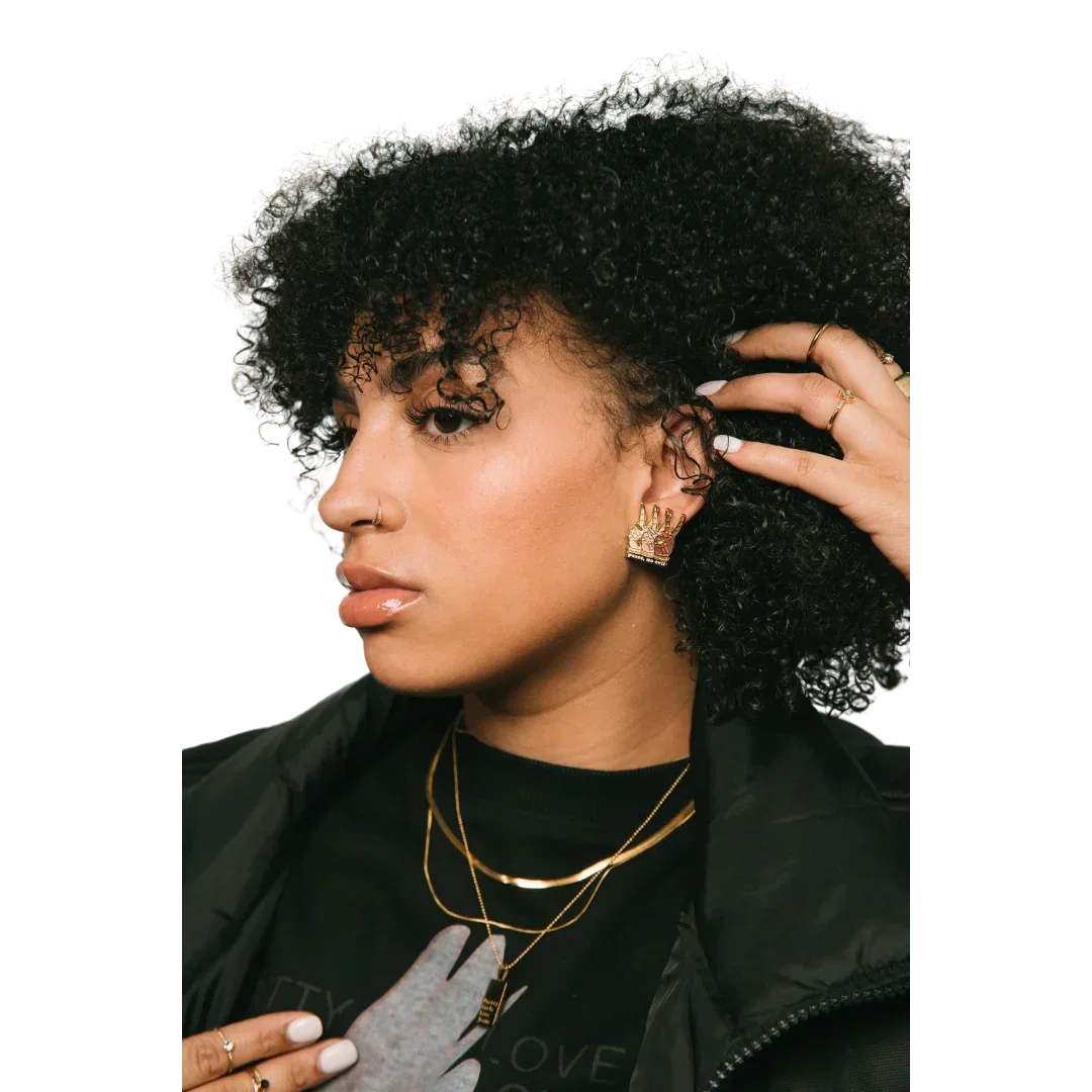 A new take on a timeless message. These PGLJ stud earrings vibrantly promote peace from the darkest to the brightest of shades. Incorporating elements of streetwear and pop culture, these studs serve as a means to express a desire for a more peaceful world without sacrificing who you are through fashion.