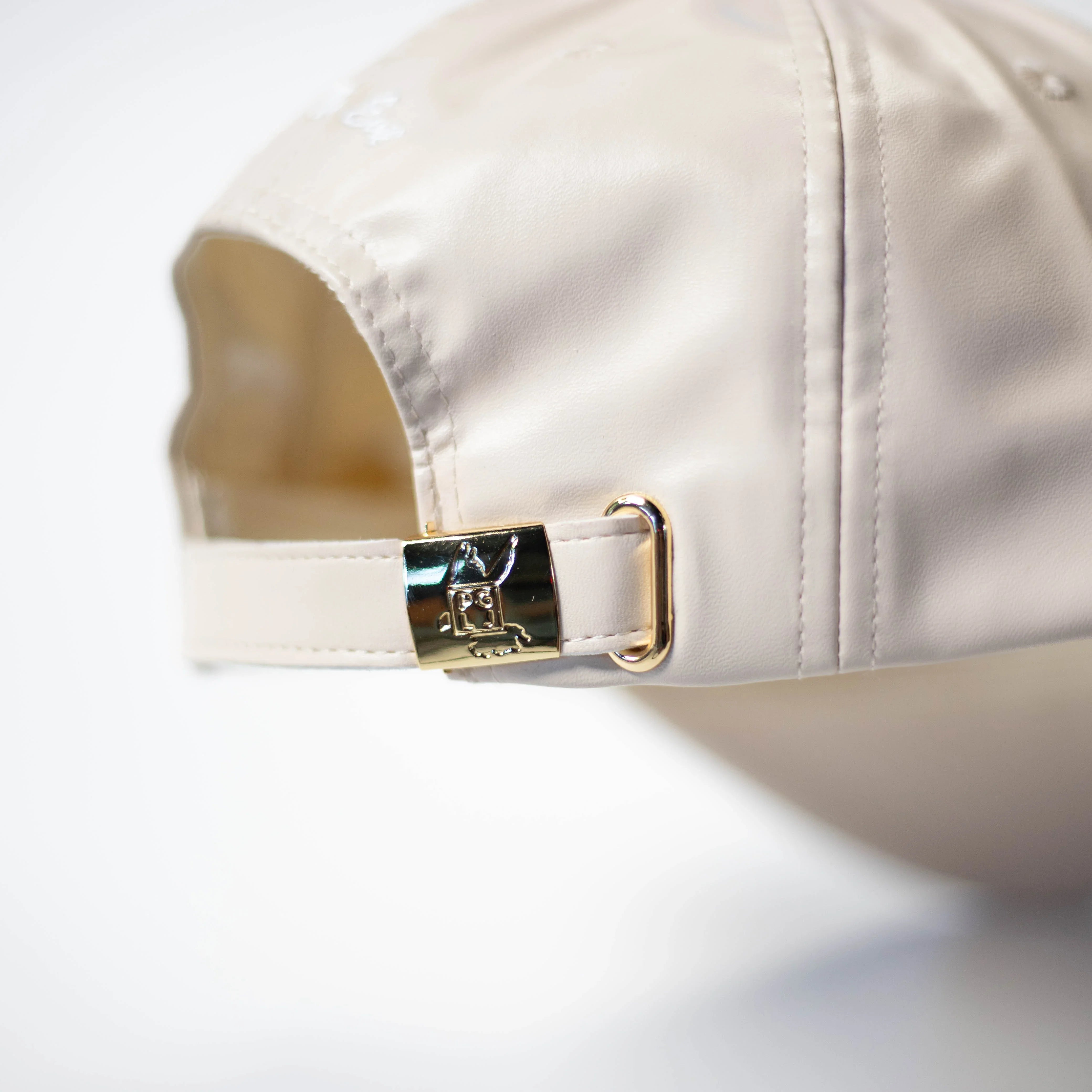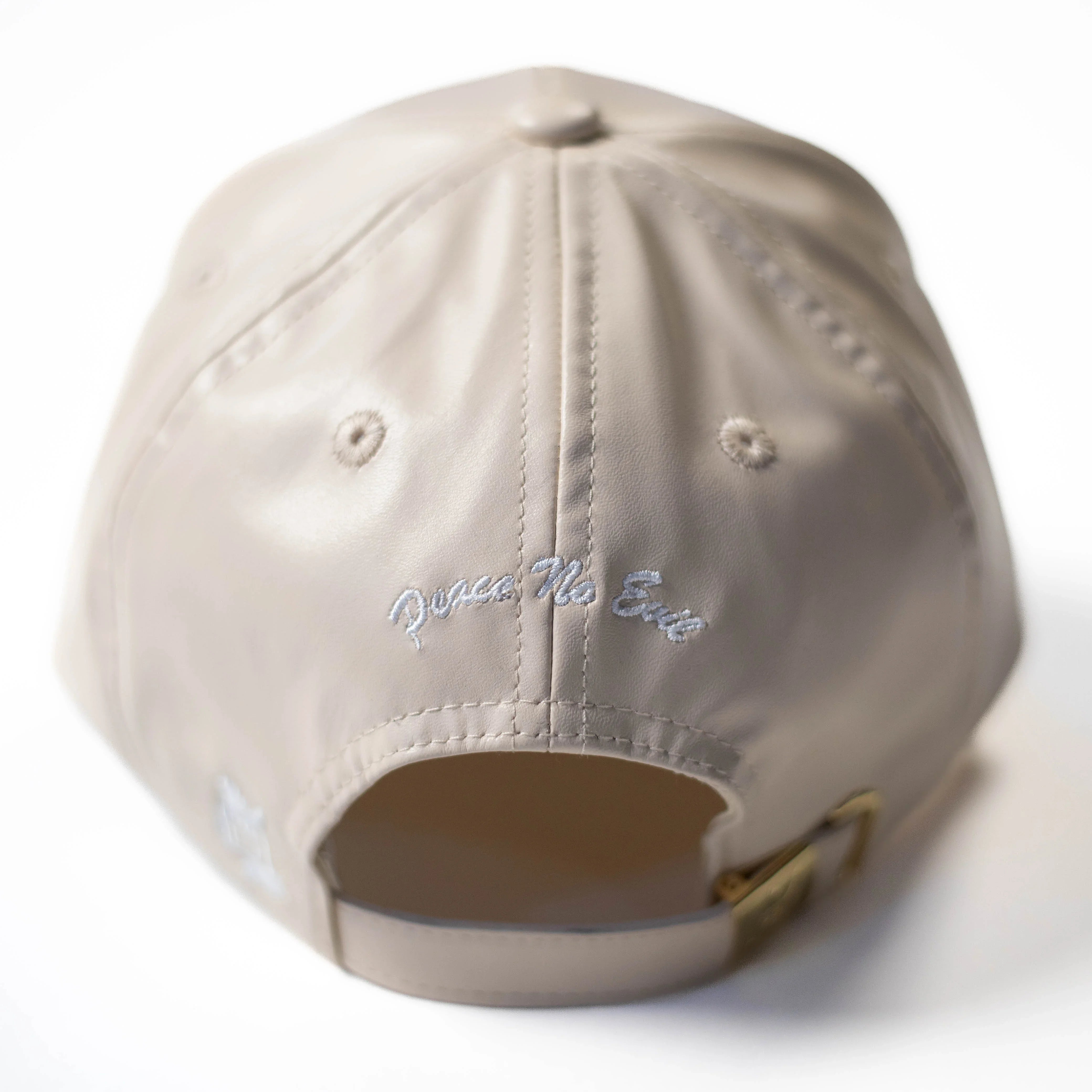 A new take on a timeless message. The PGLJ Black leather dad cap classically promotes peace from its sharp defining letters on the front panel to the gold buckle closure in the back. Incorporating elements of Brooklyn streetwear and California’s pop culture, they are perfect for those who need to express a desire for a more peaceful world without sacrificing your drip. Also available in Purple, and Neutral colorways
