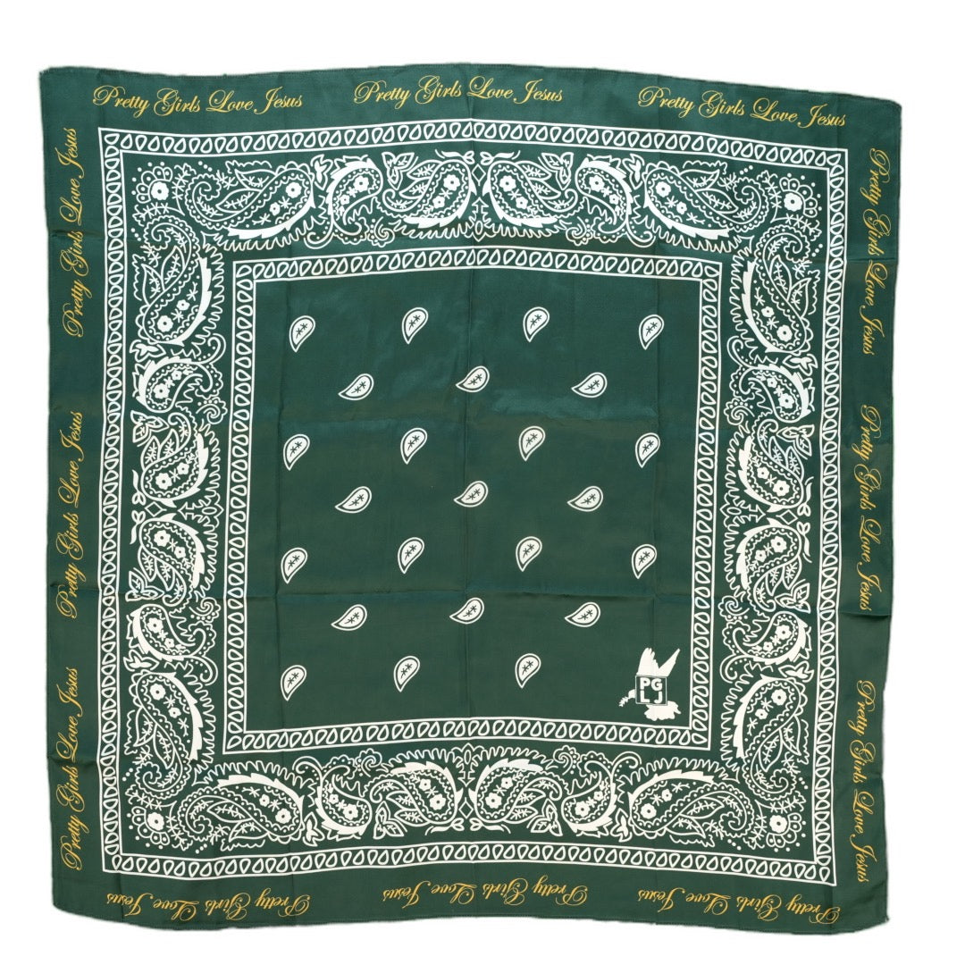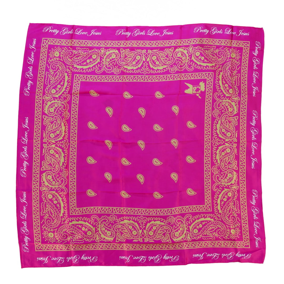 Signature Pretty Girls Love Jesus Statement Scarf. Available in other colorways. Oversized and can be used as head scarf, belt accessory, or added to hat wear.