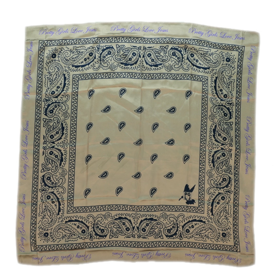 Paisely design with Pretty Girls Love Jesus Mantra along scarf boarder